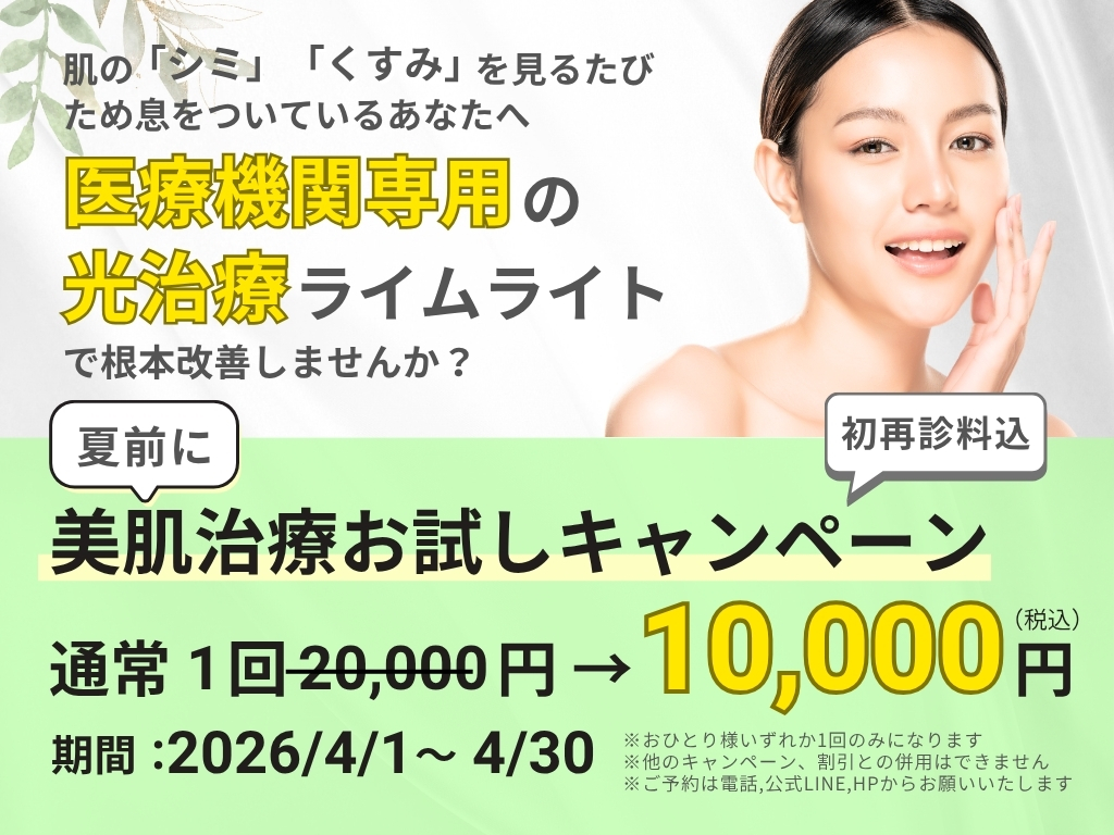 【夏前に✨シミ・くすみを一気にケア!光治療〈ライムライト〉半額キャンペーン】